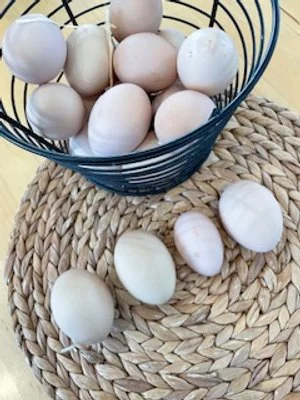 one of our pullets laid her first egg! She (and 11 others) arrived as a 2-day old chick on July 18. The books say they start to lay at 5 months. The books got that right….almost to the day! It may not be as big as the others…but it surely is just as lovely.